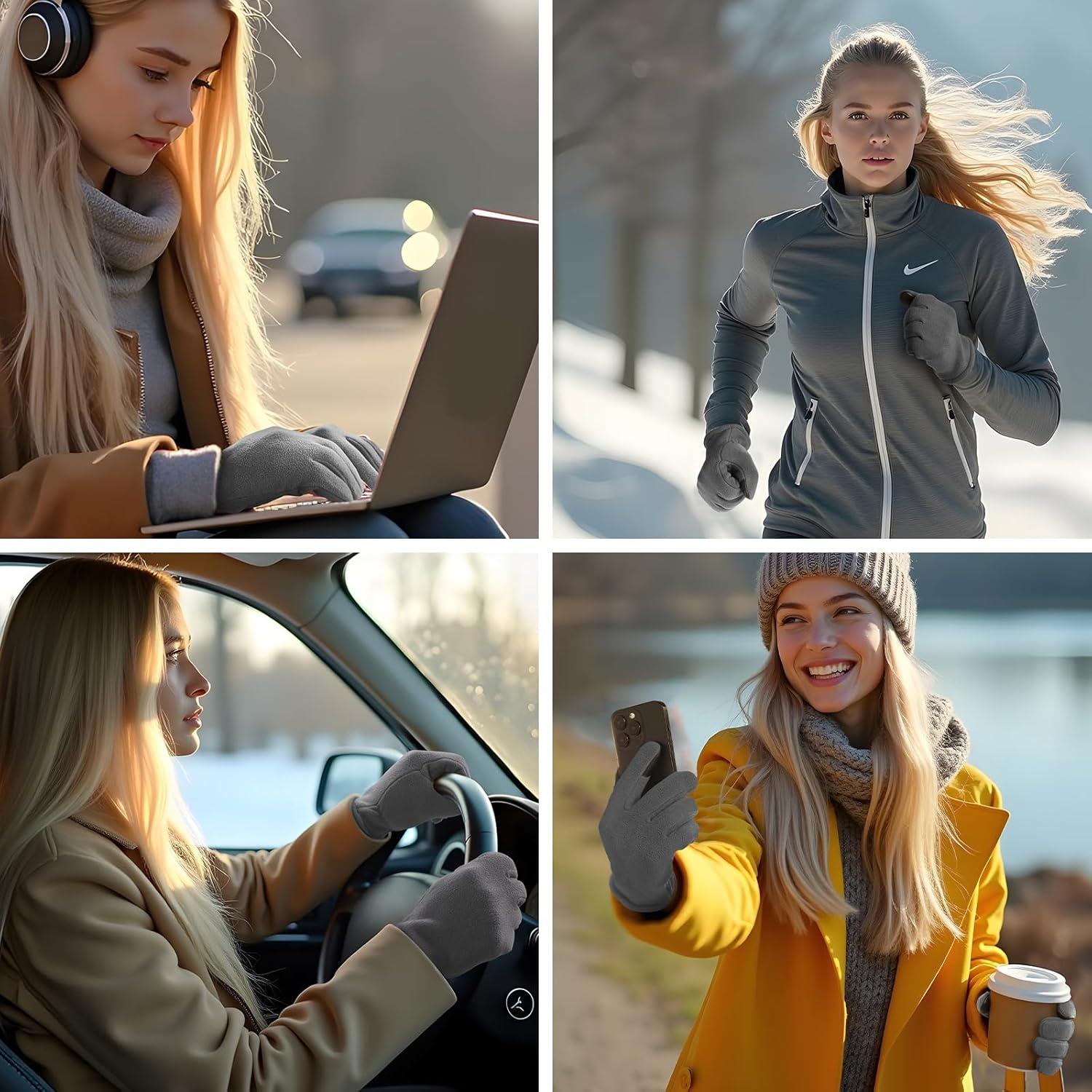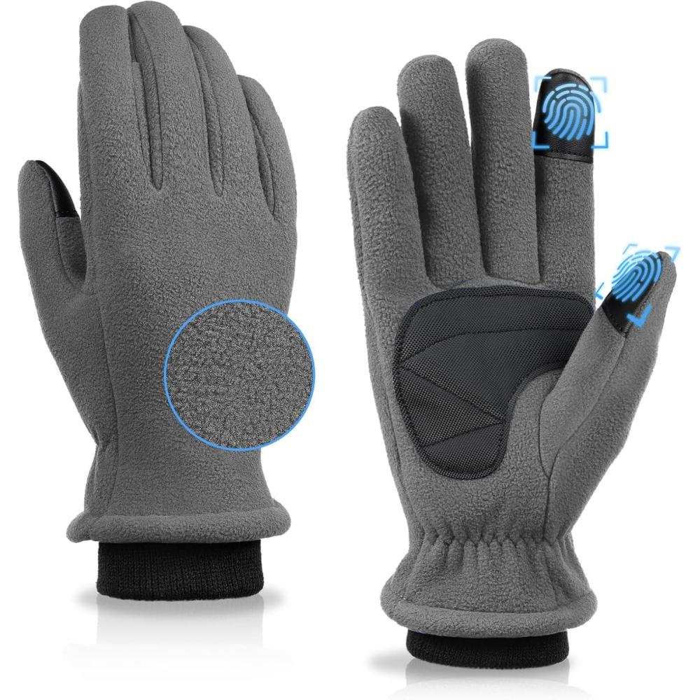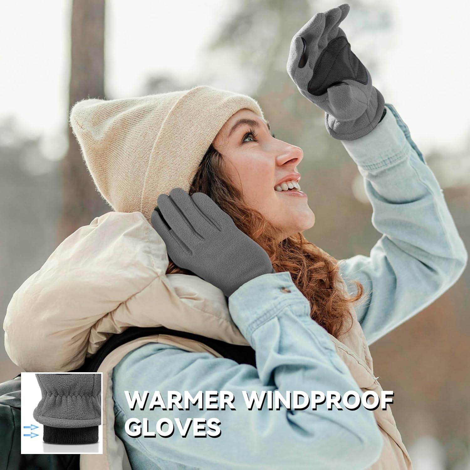 OZERO Warm Winter Gloves for Women: Touchscreen 2-Layers Polar Fleece Gloves for Gold Weather Texting Running(Gray)